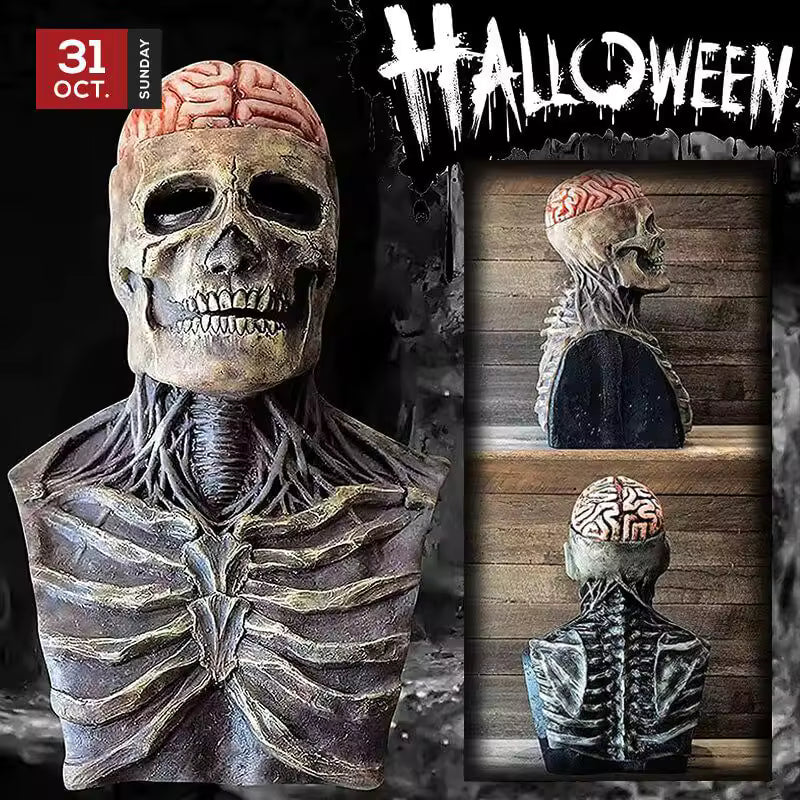 Con nuestra máscara de calavera con cerebro expuesto, nadie te olvidará. Es espeluznante, súper cómoda, resistente y de alta calidad, ideal para asustar, grabar y usarlo año tras año.